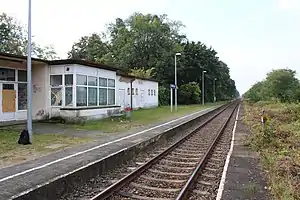 Trebnitz (Mark) station is a railway station in the municipality of Trebnitz (Mark) in the Märkisch-Oderland district of Brandenburg, Germany. It is served by the line RB 26.