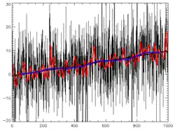 In the above discussion the distribution of trends was calculated by simulation, from a large number of trials. In simple cases (normally distributed random noise being a classic) the distribution of trends can be calculated exactly without simulation.