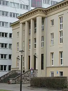 Treskowallee was developed in 1895 as part of the Carlshorst (now Karlshorst) mansion settlement by Carl von Treskow, a member of the German Treskow family, who at the time lived in the nearby Friedrichsfelde Palace and owned the surrounding land. The boulevard originally ran from the gates of Friedrichsfelde Palace to the Karlshorst horseracing track, which was opened in 1884.[1][2] The Karlshorst rail station was opened in 1895. In 1961, the northern part of the boulevard was renamed "Am Tierpark", while the southern part was renamed "Hermann-Duncker-Straße". After the reunification of Berlin, the name was changed back to Treskowallee.