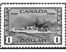 A 1944 Canadian postage stamp showing a Tribal-class destroyer