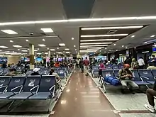 There is a duty-free shop in the departure area, and tea, coffee and confectionery outlets. There are also baggage help desk, senior citizens and mother room, banking services and pre-paid taxi services to assist passengers at the terminal building.[32] The domestic terminal is to the northern side of the airport, can be accessed using Free Shuttle Service from the airport main gate. In its temporary building, the domestic terminal has set aside 289 square metres (3,110 sq ft) for airline offices, 282 square meters (3,040 sq ft) for restaurants, and 58 square metres (620 sq ft) for lavatories. The terminal has a capacity of 765 passengers per hour.[33]