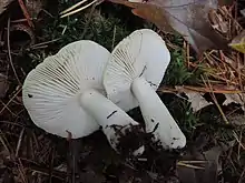 - ↑ Ovebro CL. (1989). "Tricholoma, subgenus Tricholoma, section Albidogrisea: North American species found principally in the Great Lakes region". Canadian Journal of Botany. 67 (11): 3134–52. doi:10.1139/b89-393.