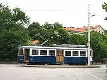 The Trieste–Opicina tramway (Italian: Tranvia Trieste-Opicina, Slovene: openski tramvaj, Triestine: Tram de Opcina) is an unusual hybrid tramway and funicular railway in the city of Trieste, Italy. It links Piazza Oberdan, on the northern edge of the city centre, with the village of Villa Opicina in the hills above.[1][2]