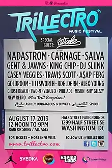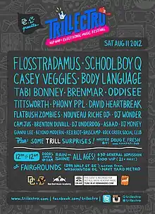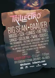 Trillectro Music Festival is a Washington, D.C.-based music festival founded in 2012. The annual single-day outdoor gathering features hip-hop, electronic, R&B and indie rock acts and is lauded for showcasing up-and-coming musicians on the eve of their big break.[1]