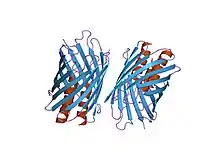 ![]() The beta barrel structure found in the C-terminus of the bacterial adhesin anchor domain, YadA[22] | |||||||||