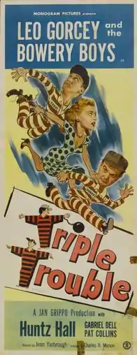 Triple Trouble is a 1950 comedy film directed by Jean Yarbrough and starring The Bowery Boys.[1] The film was released on August 13, 1950, by Monogram Pictures and is the nineteenth film in the series.
