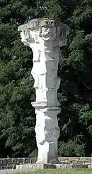 According to Jiří Dynda, Triglav may have been a three-headed god who combined the three gods responsible for Earth, Heaven, Underworld. In doing so, he cites the pass of "Neptune"[lower-alpha 3] worshipped in Wolin and links this to Slovenian traditions regarding Mount Triglav, a three-leveled idol from Zbruch, a Wolin's sacred spear attached to a pole, and an oak tree with a spring which,[lower-alpha 5] according to Dynda, corresponds to the Norse Yggdrasil and the wells beneath it, and the hiding of the god's statue in the tree all of which are said to be connected to the Axis mundi. Dynda proposes the following interpretations:[31]