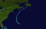 In the second week of July, an area of convection merged with a cut-off low-pressure area, which developed on July 8. After about 7 days, ship data indicated that a circulation developed on July 15. Thus, the system became Tropical Depression One at 1800 UTC that same day, while located south-southeast of Bermuda. The depression slowly curved northwestward around Bermuda and began strengthening. By late on July 16, the depression strengthened into Tropical Storm Ana. Thereafter, the storm turned northward and passed west of Bermuda later that day.[13] On July 17, Ana accelerate north-northeastward under the influence of a frontal system and eventually paralleled Nova Scotia.[14]