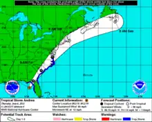 - ↑ Michael J. Brennan (June 6, 2013). Tropical Storm Andrea Discussion Number 2. National Hurricane Center (Report). Miami, Florida: National Oceanic and Atmospheric Administration. Retrieved September 7, 2013.