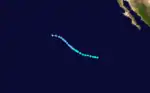 Glenda's time as a hurricane was very short lived as it was downgraded to a storm just six hours after the initial upgrade.[5] The weakening trend continued while it moved northwest, towards the Baja California Peninsula, but Glenda moved westward, avoiding landfall. It dissipated on September 12.