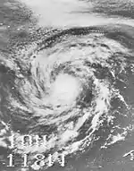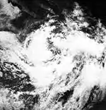 Radio interference and low angle plagued research into a possible circulation that had developed in an area of the ITCZ during September 28 and September 29.[2] Finally, on September 30, a depression was thought to have developed. However, a bulletin from a different source provided with a mosaic image was the evidence used in giving the system the name Irah and treating it as a tropical storm.[2] Irah moved west-northwest until October 1, when it curved northward. By this point, Irah had started weakening, dropping into a depression on October 3. Shortly afterward, Irah had degenerated into an area of squalls.