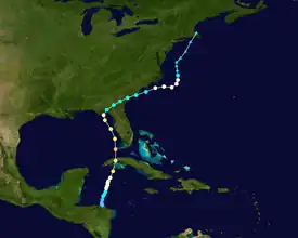 - ↑ Atlantic basin Comparison of Original and Revised HURDAT. Hurricane Research Division; Atlantic Oceanographic and Meteorological Laboratory (Report). Miami, Florida: National Oceanic and Atmospheric Administration. March 2011. Retrieved March 6, 2012.
