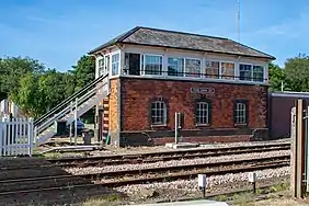 Signal boxes had been built to control the complex layout at Truro by 1880.[8] These were replaced by a new Truro West signal box in 1897 and a new Truro East in 1899. These were both Great Western Railway Type 7A signal boxes. The West box, which was situated on the north side of the line near the entrance to the engine shed, was closed on 7 November 1971 when the East box, situated on the same side of the line just east of the level crossing, was renamed as just "Truro".[9]