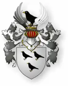 Argent, three jackdaws sable