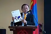 He holds elected titles such as Member of the World Economic Forum;[13] Member of the Board of the UNESCO Institute for Information Technologies in Education in Moscow;[14] Member of the International Union for Prehistoric and Protohistoric Sciences, Member of the Board of the Arts Council of Mongolia,[15] president of the Mongolian Archery Association,[16] Member of the Democratic Party's National Policy Committee. He is also a former member of the Board of American University of Mongolia.