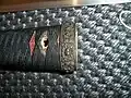 A sageo (下緒 or 下げ緒) is a hanging cord made of silk, cotton or leather that is passed through the hole in the kurigata (栗形) of a Japanese sword's saya. There are a number of different methods for wrapping and tying the sageo on the saya for display purposes. Other uses for the sageo are tying the sword to the samurai and hojojutsu. The samurai felt the sageo formed a spiritual bond between them and the sword, and they were very particular about tying it correctly when the sword was not in use.[15]