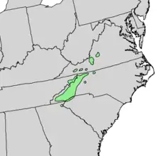 - ↑ Geographic Distribution Map: Tsuga caroliniana (Carolina Hemlock).