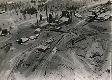 Tsumeb, since its founding, has been primarily a mining town. The mine was originally owned by the OMEG (Otavi Minen- und Eisenbahn-Gesellschaft) and later by TCL (Tsumeb Corporation Limited) before its closure a few years ago, when the ore at depth ran out. The main shafts became flooded by ground water over a kilometre deep and the water was collected and pumped as far as the capital, Windhoek. The mine has since been opened up again by a group of local entrepreneurs ("Ongopolo Mining"). A fair amount of oxidized ore remains to be recovered in the old upper levels of the mine. It is highly unlikely, though, that the deepest levels will ever be reopened.[9]