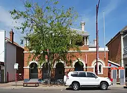 There is an alleyway to the west of the building, which provides access to the postal boxes at the rear, inset into a modern extension of red brick with clerestory windows. A bagged brick firewall has been built on the boundary, and the yard is brick paved. The post box 'alley' has a steel framed verandah, and a clear polycarbonate roof.[1]