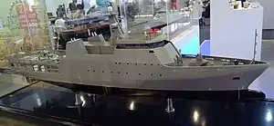 ![]() Scale model of Damen 1800 OPV at ADAS 2018 | |