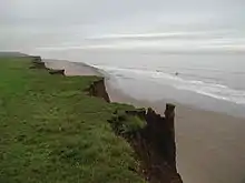The coast at Tunstall is eroding at an average rate of 1.1 to 2 m (3 ft 7 in to 6 ft 7 in) a year.[2]