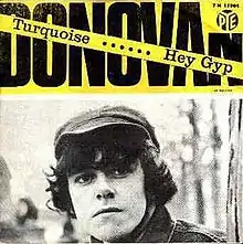 "Turquoise" is a song written and recorded by British singer-songwriter Donovan. The "Turquoise" single was released in the United Kingdom on 30 October 1965 through Pye Records (Pye 7N 15984) and charted, peaking at No.30. The "Turquoise" single was backed with "Hey Gyp (Dig the Slowness)" and only released in the United Kingdom. "Turquoise" was released as the b-side on "To Try for the Sun" in the United States.