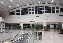 The passenger terminal is a two-story structure with a total area of 22,472 square metres (241,890 sq ft), designed to separate departure and arrival areas on different levels. The upper floor houses check-in counters, a security checkpoint, and a departure pier with eight gates equipped with fixed jet bridges. Two of these gates are capable of accommodating large aircraft like the Boeing 767 and the Airbus A330.