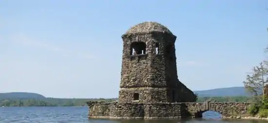 Stone Tower in Washining Lake (east twin), near Camp Isola Bella.