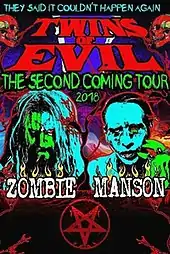 Twins of Evil: The Second Coming Tour was the second double bill concert tour co-headlined by American rock bands Rob Zombie and Marilyn Manson with special guest Deadly Apples, launched in support of Manson's tenth studio album Heaven Upside Down (2017) and Zombie's sixth solo album The Electric Warlock Acid Witch Satanic Orgy Celebration Dispenser (2016),[1] as well as a vinyl box set released by Zombie on March 30, 2018.[2][3] The tour was a sequel to the 2012 "Twins of Evil Tour",[4] and visited arena-sized venues from July 11 to August 29 and December 29.[5]