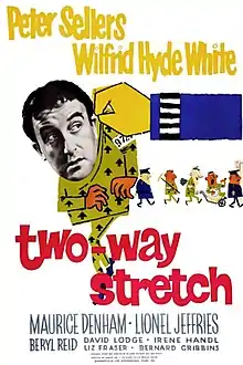 Two-Way Stretch is a 1960 British comedy film directed by Robert Day and starring Peter Sellers, Wilfrid Hyde-White, Lionel Jeffries and Bernard Cribbins.[1] The screenplay is by Vivian Cox, John Warren and Len Heath. A group of prisoners plan to break out of jail, commit a robbery, and then break back into their jail again, thus giving them the perfect alibi – that they were behind bars when the robbery occurred. However, their plans are disrupted by the arrival of a strict new Chief Prison Officer.