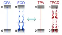 - ↑ Toro, C.; De Boni, L.; Lin, N.; Santoro, F.; Rizzo, A.; Hernandez, F. E. (2010). "Two-Photon Absorption Circular Dichroism: A New Twist in Nonlinear Spectroscopy". Chem. Eur. J. 16 (11): 3504–3509. doi:10.1002/chem.200902286. PMID 20162644.