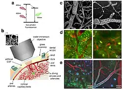 - ↑ Helmchen F.; Denk W. (2005). "Deep tissue two-photon microscopy". Nat Methods. 2 (12): 932–40. doi:10.1038/nmeth818. PMID 16299478. S2CID 3339971.