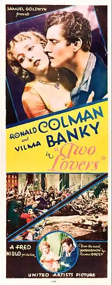 Two Lovers is a 1928 American silent historical drama film directed by Fred Niblo and starring Vilma Bánky, Ronald Colman, and Noah Beery. Based on the novel Leatherface: A Tale of Old Flanders by Baroness Emma Orczy, it was produced by Samuel Goldwyn.[1]