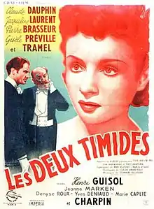 Two Timid Souls (French: Les deux timides) is a 1943 French historical comedy film directed by Yves Allégret, Marcel Achard and Marc Allégret and starring Pierre Brasseur, Jacqueline Laurent and Claude Dauphin.[1] It was based on the 1860 play by Eugène Labiche which had previously been turned into a 1928 silent film version by René Clair. The film's sets were designed by the art director Paul Bertrand.