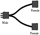 A twofer is a cabling device used in theatrical stage lighting. It allows two stage lighting instruments to be connected to one circuit. It is wired in parallel, such that voltage is unchanged in the twofer, and current is split and divided over two connectors. Twofers are used in conjunction with cables with the same types of connectors.[1] The name is a corruption of the phrase "Two For One".