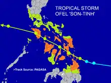 - ↑ "SitRep No. 17 re Effects of Tropical Storm "Ofel" (Son-Tinh)" (PDF). National Disaster Risk Reduction and Management Council. November 1, 2012. Archived from the original (PDF) on October 17, 2013. Retrieved November 15, 2012.