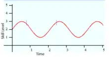 This developmental curve reflects the progression of intuitive thinking processes as a person develops more advanced knowledge structures in a specific area.[5] The shape of the curve reflects the variability of general intuitional availability.This means once intuition levels increase but also s/he can make more higher order intuitive connections/understandings given a corresponding increase in expertise.[1] In this graph the axes would be availability of intuition (being th Y-axis) and level of expertise (being the X-axis), instead of the skill level (being the Y-axis) and time (being the X-axis). The “U” curve represents two different types of intuition: which are referred to as immature intuition(the top left of the "U") and mature intuition (the top right of the "U").[5]
