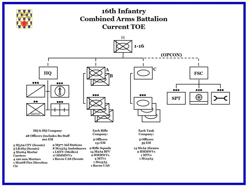 After performing the MiTT training mission for three years, the 1st Battalion began the process of reorganizing and training as one of the Army's new Combined Arms Battalions (CAB) in 2009. In January 2011, however, the 1st Battalion was deployed once again, this time on a unique mission to Afghanistan. For this deployment, the battalion was attached to the Combined Joint Special Operations Command-Afghanistan (CJSOCC-A) and assigned to support a new effort known as the Village Stability Operations (VSO) program. This program required that the battalion be broken down into squads and sometimes fire teams and distributed to selected villages throughout Regional Commands East, South, West, and North. The squads and teams worked with Special Forces Teams and other special operations forces to help the villagers raise detachments of Afghan Local Police (ALP) who would then provide security to the villages. Those assigned to Headquarters and Headquarters Company were sent out to different NATO members Provincial Reconstruction Teams in order to assist with information sharing and liaison between the countries. The 16th Infantry established this with Germany, Norway, and Hungary. Members of the 16th were even utilized by 1st Special Forces Group and Afghan Commandoes as Forward Logistical Elements supporting CENTOM level missions. The Iron Rangers returned to Fort Riley from Afghanistan in December 2011.