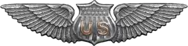 After the creation by executive order in 1918 of the Army Air Service, a standard wings-and-shield design for the rating badge, still in use today, was created by sculptor Herbert S. Adams of the United States Commission of Fine Arts and approved on 25 January 1919.[14][16] Army regulations regarding ratings underwent a major revision by the Director of Air Service on 16 October 1919, when the RMA rating was officially changed to Airplane Pilot (although usage of the RMA terminology continued until 1920), all observers were termed Aerial Observer, and new ratings of Enlisted Pilot,[n 10] Airship Pilot, Aerial Gunner, and Aerial Bomber were created. Among the new ratings, a 50% aviation increase was authorized for the enlisted pilot and 25% for all the others. The new ratings, however, proved to be only a demobilization expedient and lasted less than nine months.[17][n 11]