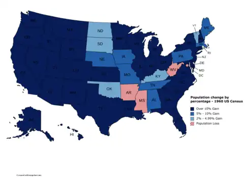 The 1960 United States census, conducted by the Census Bureau, determined the resident population of the United States to be 179,323,175, an increase of 19 percent over the 151,325,798 persons enumerated during the 1950 census. This was the first census in which all states recorded a population of over 200,000. This census's data determined the electoral votes for the 1964 and 1968 presidential elections. This was also the last census in which New York was the most populous state.