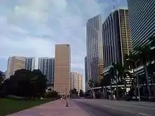 North of Snapper Creek (Canal C-2), US 1 continues northeast and enters another section of unincorporated Miami-Dade County. Here, US 1 forms the Snapper Creek Expressway (SR 878)'s eastern terminus. Dadeland South station lies just south of the expressway, on US 1's northern side, and acts as the handover point between the South Miami-Dade Busway and the Metrorail line, which proceeds to parallel US 1 for most of its subsequent journey into Downtown Miami. The South Dixie Highway then crosses into South Miami at South 80th Street.[32] At SR 959 (Red Road/West 57th Avenue), US 1 leaves South Miami and enters Coral Gables, passing the main campus of the University of Miami and headed northeast.[33] At West 38th Avenue (Brooker Street), it leaves Coral Gables and enters Miami, heading northeast toward the southern terminus of I-95 just south of Downtown Miami. At this point, there is a signage gap in the route even though it is federally and state defined as cosigning with I-95 and SR 970 all the way to Biscayne Boulevard,[34] where US 1 signage resumes.