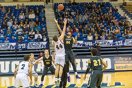 UC San Diego basketball plays its home games at Liontree Arena in La Jolla. At the end of the 2007–08 season, they won the CCAA tournament and advanced to the first round of the NCAA West Regionals. After a relatively dry spell, the team has seen most of its success in recent years under Eric Olen. In 2015–16, they were the NCAA West Region runners-up. The 2016–17 season was the first in which they won the CCAA regular-season title; they also won the CCAA Tournament and were again NCAA West Region runners-up.[3] The team won the CCAA Tournament again in 2017–18, but dropped in the NCAA West Regional quarterfinals. The Tritons have the most CCAA Tournament titles of any current CCAA member school, with three.