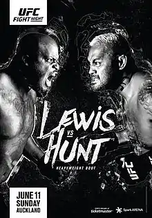 UFC Fight Night: Lewis vs. Hunt (also known as UFC Fight Night 110) was a mixed martial arts event produced by the Ultimate Fighting Championship held on 11 June 2017 at the Spark Arena in Auckland, New Zealand.[2]