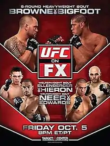 UFC on FX: Browne vs. Bigfoot (also known as UFC on FX 5) was a mixed martial arts event held by the Ultimate Fighting Championship on October 5, 2012, at the Target Center in Minneapolis, Minnesota. It was the fifth UFC event broadcast live on FX.[3]