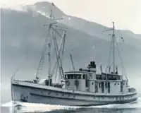 By 1978, the vessel had been renamed Patricia.[2] That year, "Snapper" Carson of Ketchikan, Alaska, purchased her for US$190,000. He renamed her Crane and used her until 2003 for salmon and herring fishing and packing.[2] During Carson's ownership, Crane collided with an aluminum seiner under tow by another aluminum seiner that cut across her bow on a dark night while Crane was in the waters of British Columbia, heading north from Washington to Southeast Alaska; the sturdily built Crane almost sliced the seiner in half, but herself sustained no damage.[2][12] On another occasion, when Carson placed Crane on a gridiron for the annual painting of her bottom, a large oil slick appeared to be spreading from her, but it turned out be creosote that Crane's great weight, a result of her strong construction, was squeezing from the gridiron's timbers.[2][12]