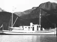 In her early years, Scoter's annual operational pattern involved patrols in the Bristol Bay region each summer, often followed by autumn patrols in Southeast Alaska, with winters spent hauled out of the water at the BOF station at the Naknek River on the Bristol Bay coast.[2] Her annual pattern of activities changed over time as her role in the BOF evolved. In 1928, Dr. Willis H. Rich, the BOF's chief investigator for salmon fisheries, and BOF agent Dennis Winn used Scoter to visit key fishing areas and facilities in Bristol Bay.[2] On 25 October 1928, she was among several BOF vessels tasked to assist in enforcing the provisions of the Northern Pacific Halibut Act of 1924, joining United States Navy ships and most of the rest of the BOF's Alaska Territory fleet in protecting populations of Pacific halibut in the Bering Sea and North Pacific Ocean, with her crew and other embarked BOF personnel granted all powers of search and seizure in accordance with the act.[2][3] At the end of the 1928 season, her winter routine changed; rather than heading to the Naknek River for winter haul-out, she transported fishery workers to Seattle, Washington, and spent the winter of 1928–1929 there, undergoing a complete overhaul that included the installation of a new pilothouse and the extension of her aft trunk.[4] In the spring of 1929 she returned to Alaskan waters, transporting BOF employees to Alaska for the 1929 season.[2] Thereafter she spent each winter at Seattle, undergoing renovation and repair, using her annual end-of-season voyage to Seattle and her yearly voyage northward in the spring to transport BOF employees and occasionally dignitaries from and to the Territory of Alaska.[2]
