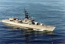 USS Bradley (FF-1041) was the second of ten 2,620-ton Garcia-class destroyer escorts, later reclassified as frigates, in the United States Navy. She was named for Captain Willis Winter Bradley, Jr. She was later sold into the Brazilian Navy as Pernambuco (D 30).