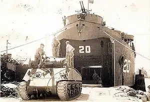 In October 1944, LST-20 moved to the Philippines to participate in General Douglas MacArthur's promised liberation of the islands from the Japanese occupation. LST-20 participated at the Leyte landings and the Battle of Luzon Lingayen Gulf landings in January 1945.[1]