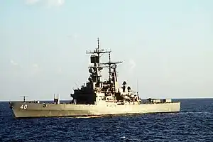 USS Mississippi (CGN-40), a Virginia-class nuclear-powered guided-missile cruiser, was the fourth ship of the United States Navy named in honor of the 20th state admitted to the Union. Her keel was laid down by the Newport News Shipbuilding and Drydock Company at Newport News, Virginia, on 22 February 1975. She was launched on 31 July 1976. The ship was commissioned on 5 August 1978 by Jimmy Carter, then serving as the 39th president of the United States. Early deployment included escorting the carrier USS Nimitz (CVN-68). She also was deployed in 1989 as a response to the capture and subsequent murder of U.S. Marine Corps Colonel William R. Higgins by terrorists.[1]