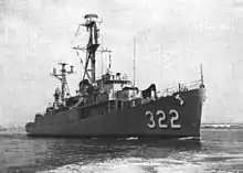 Fitted out with the latest electronic equipment, manned for the first time by a Navy crew and reclassified DER–322, Newell recommissioned at Long Beach 20 August 1957, and steamed to her new home port, Pearl Harbor. She soon took up station on the Pacific Barrier, the westward extension of the DEW Line. For over seven years she alternated duty at Pearl Harbor with patrols on the Pacific Barrier. During this period she also served in Operation Cosmos, the escort line for President Eisenhower's flight to the Far East in the spring of 1960; and provided weather surveillance for Johnston Island/Christmas Island nuclear tests. On 15 April 1965, Newell departed Pearl Harbor for her 28th Pacific Barrier patrol, the last picket ship to steam for the Pacific Barrier which Newell helped to formally terminate in a ceremony at Midway Island 1 May. The radar picket escort vessel then returned to Pearl Harbor to prepare for a WestPac deployment.[1]